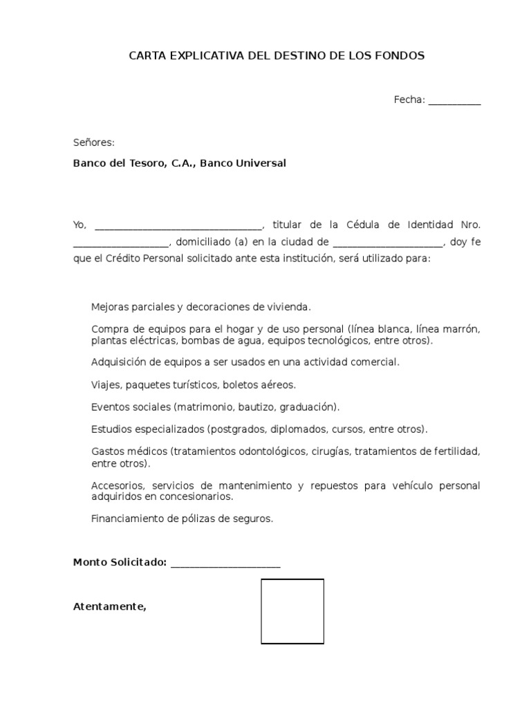 Carta Explicativa De Destino De Fondos Banco Del Tesoro Notilogia Bancos Bancario Como Resolver Um Cubo Magico 3x3