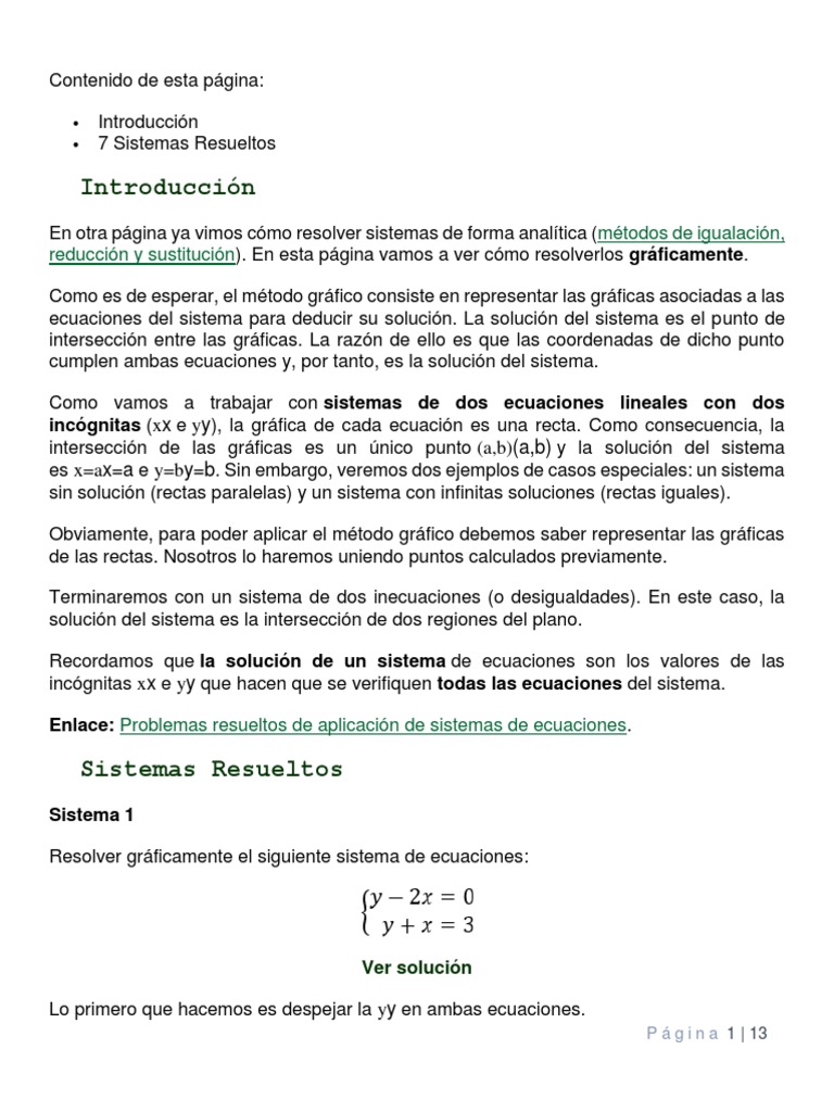 1 Sistemas Lineales Resolucion Grafica Pdf Free Download Educacion En Linea Dibujos