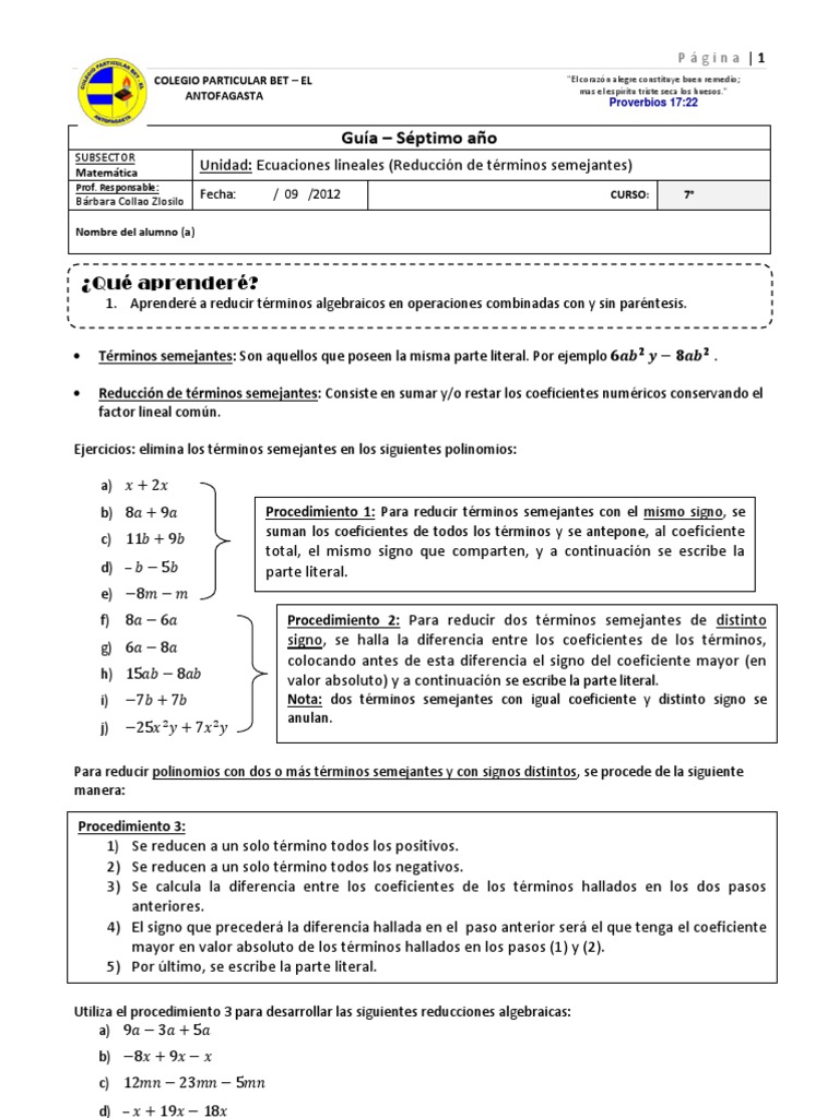 Guia De Reduccion De Terminos Semejantes Soporte Algebra Solicitar Credito Liverpool En Linea