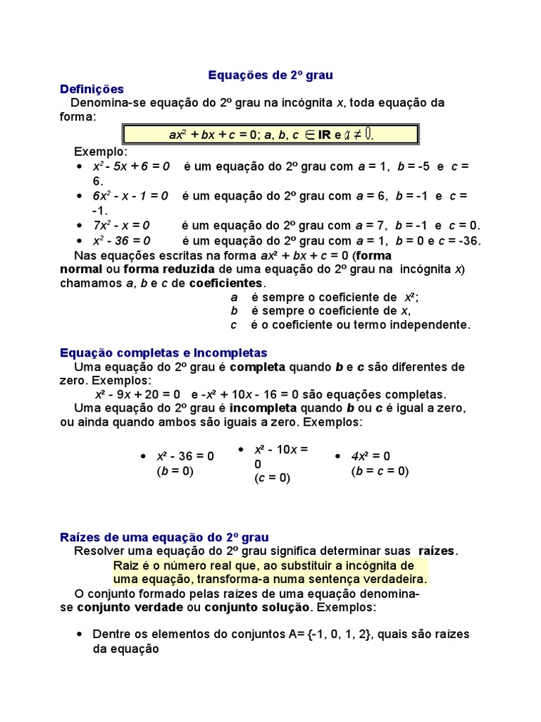 Questoes De Vestibular Na Net Equacoes Do 2º Grau Completas E Incompletas Com Exercicios No Aparecer En Linea En Whatsapp
